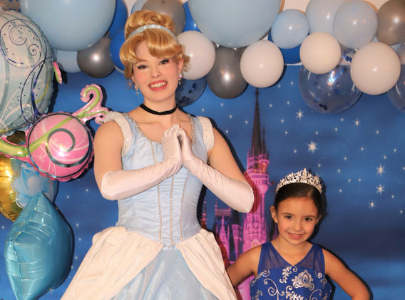 Our Cinderella character performer wears a delicate blue ballgown and an elegant updo. She always wears gloves and of course, sparkly slippers!